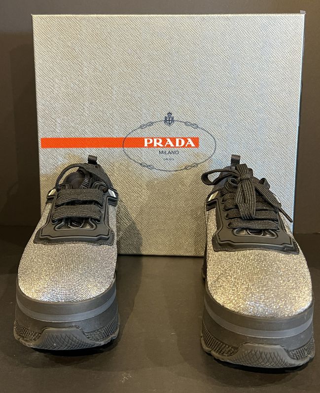 Looking for some stylish and dun tennies? Check out these super cute Prada Calzature Donna sneakers. Find these and more great designer tennis shoes at Consigning Women and consigningwomyn.com
