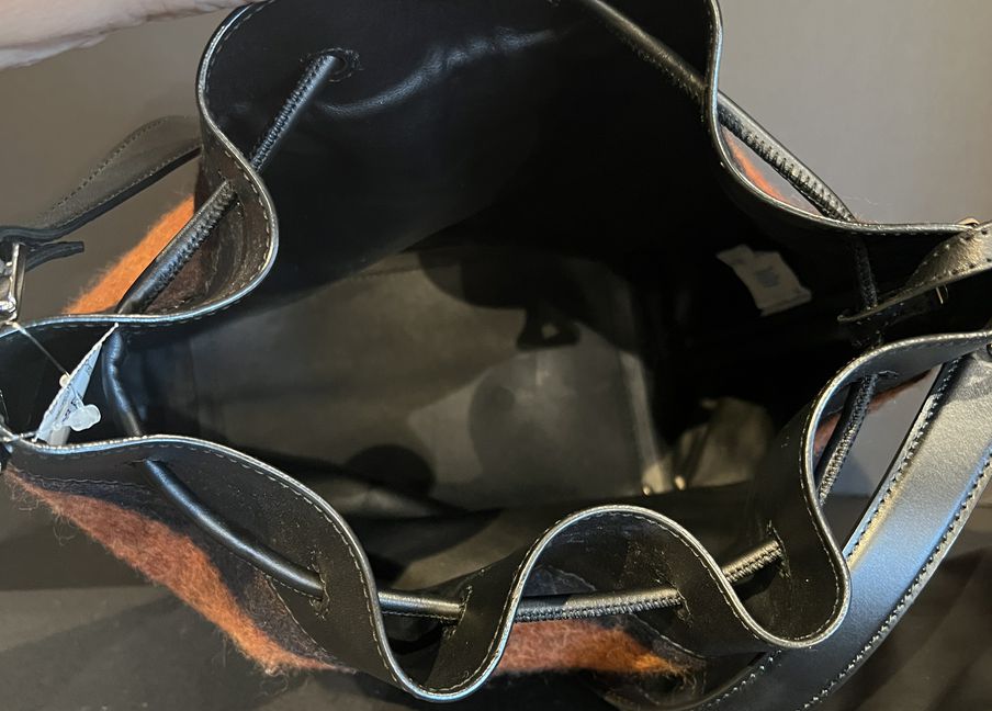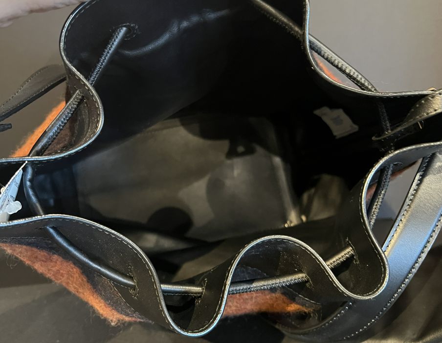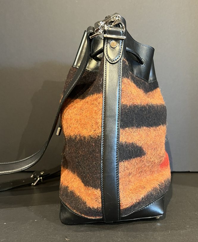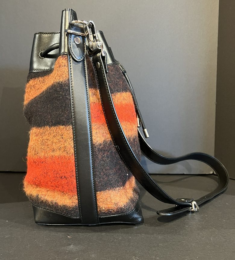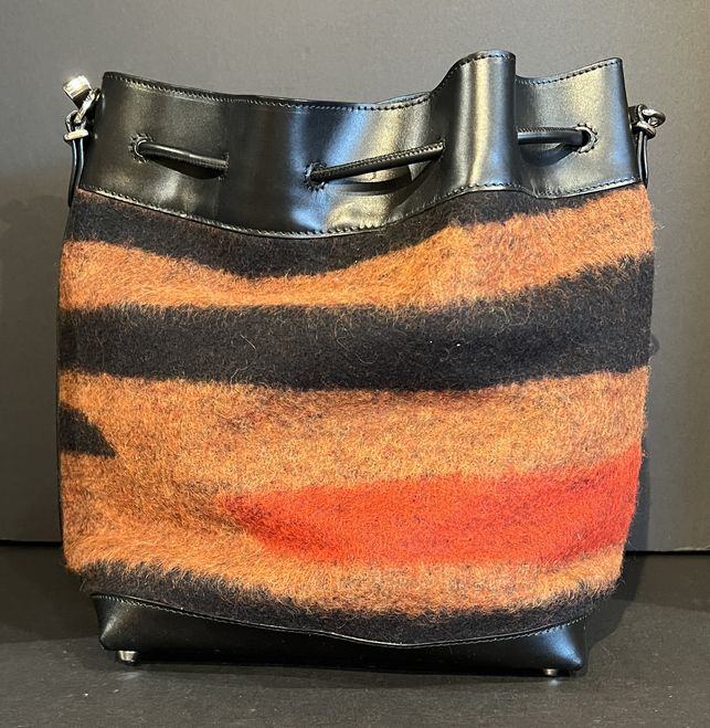 You won't get more Boho than this Proenza Schouler red & brown mix media bucket. Featuring a draw-string close. Find this at Consigning Women and consigningwomyn.com