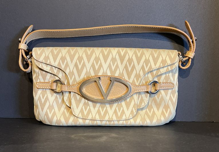 Looking to add to that Valentino collection? Add this icon piece will be just the piece you need. This Valentino Garavani V logo from the re-envisioned 68 Collection. Find this and more great designer pieces at Consigning Women and consigningwomyn.com